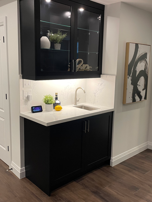 This multipurpose basement transformation in Oakville redefined how one space can serve the entire family. With nearly 1,500 square feet to reimagine, the goal was to create a warm, open-concept area for teens, guests, fitness, and relaxation. We introduced a sleek new layout with a full bedroom, steam shower, gym with glass entry, and a fluted fireplace feature wall. Custom millwork, floating floors, and a kitchenette-bar combo brought both function and charm. To enhance light, we cut foundation walls and added large egress windows—ensuring beauty and safety. The result is a vibrant, flexible space built for connection, comfort, and lasting memories.