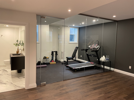 This basement build out was a lot of fun. When you have 9’ ceilings in a basement and a large open area, that’s when your imagination can run wild! Our clients here wanted a gym area, steam shower, eating area, kitchenette, bedroom and entertainment area. We were lucky here tp have room for it all! We started with realizing that we needed more light in the basement. So all existing windows were cut lower into basement. This was a great start! We gave a lot of thought to longevity as usual, so we opted to use Luxury Vinyl floors in the basement. The bathroom turned out spectacular! Layout was also very important. So we kept the bedroom and storage areas away from the main areas. We are happy to report this family is loving and enjoying this space!